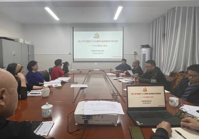 10月27日下午,15vip太阳成集团古天乐直属党支部在学院会议室开展本年度10月主题党日(扩大)活动,会议按照中共益阳市委组织部下发的“深入学习党的二十大精神 奋进新时代征程”主题党日活动的要求周密部署,认真落实,特别重点学习讨论习近平总书记在中国共产党第二十次全国代表大会上的报告。本次会议由15vip太阳成集团古天乐直属党支部书记熊兴吾同志主持,学院全体党员同志和全体教职工共同参与。